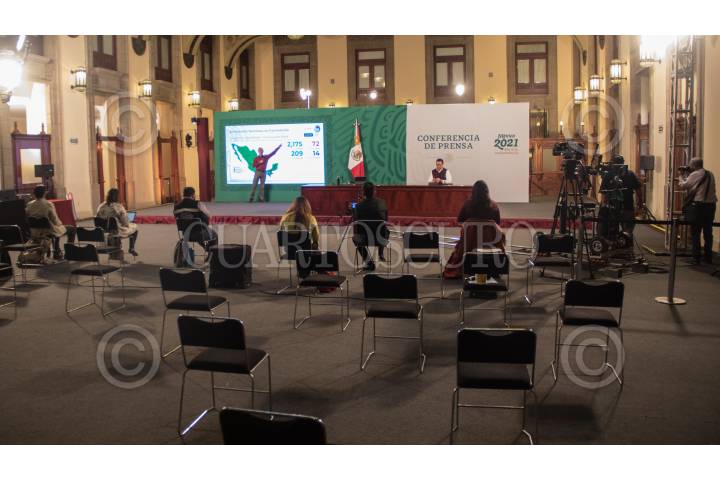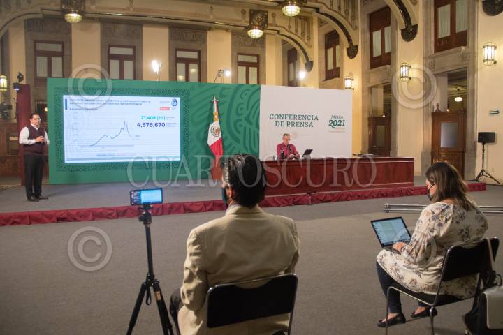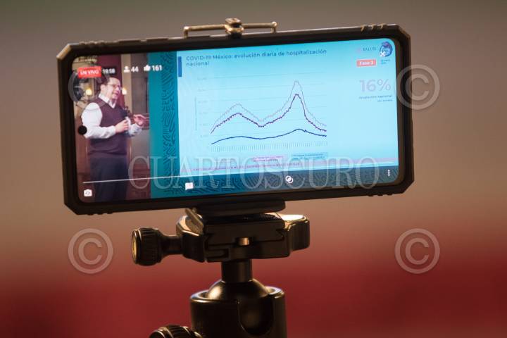 Hugo López-Gatell, subsecretario de Salud, durante su participación por videollamada en el informe diario sobre la pandemia del Covid-19 en Palacio Nacional
