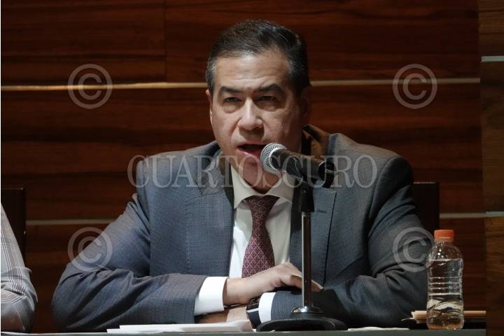 Ricardo Mejía Berdeja, subsecretario de Seguridad Pública de la Secretaría de Seguridad y Protección Ciudadana, durante una conferencia de prensa en la que anunciaron la detención de Juan Gerardo Treviño, alias "El Huevo”