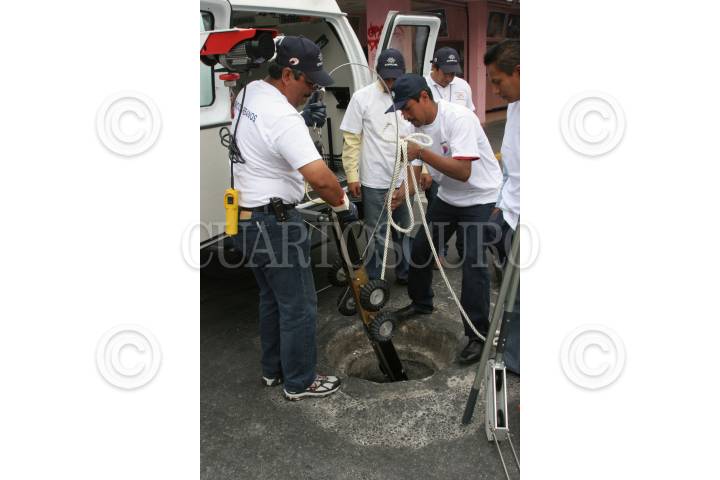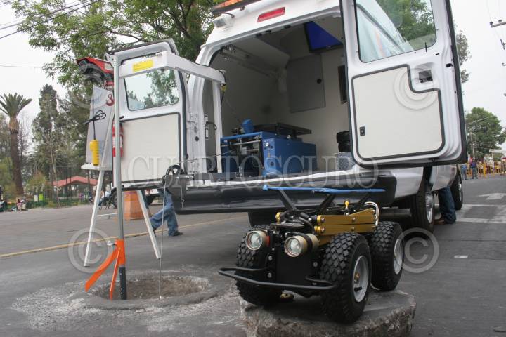 MÉXICO, D.F., 30ENERO2009.- Se inauguro en Iztapalapa el centro de Monitoreo del Subsuelo, dicho centro cuenta con equipamiento de punta como Robots de vídeo para la inspección de las paredes del drenaje, con este centro se pretende evitar deslaves. FOTO: RICARDO CASTELAN/CUARTOSCURO.COM