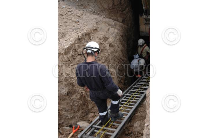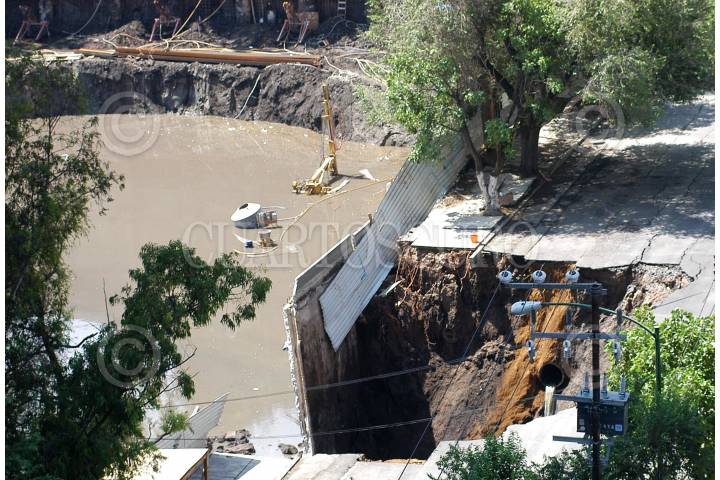 NAUCALPÁN, ESTADO DE MÉXICO, 20MAYO2009.- La dirección de protección civil municipal informó que con ayuda de un georadar se logró detectar la existencia de una caverna o cavidad a lo largo del subsuelo de la calle de Alamo Plateado, en el fraccionamiento Alamo, a un costado. Al parecer se trata de una boveda con cinco ramales a 13 metros de profundidad y se pretende rellenar con tepetate. FOTO: MARIO NULO/CUARTOSCURO.COM