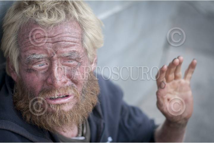 MÉXICO, D.F., 10MARZO2014.- Lenin Sánchez, de descendencia albina viene del estado de Puebla y vive en situación de calle. Manifiesta que escapó de su estado natal después de ser secuestrado y no piensa regresar. Lenin lleva dos años viviendo en las calles y sobrevive acudiendo a los albergues que ofrece el gobierno capitalino, pero no le gusta quedarse mucho tiempo porque se pelea con los demás indigentes. Existen más de 4 mil personas en situación de calle en la capital del país, quienes prefieren las calles a los albergues porque se sienten más cómodos. FOTO: DIEGO SIMÓN SÁNCHEZ /CUARTOSCURO.COM