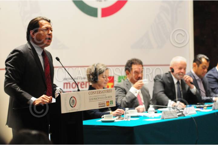 Ignacio Mier, coordinador de la bancada de Morena en la Cámara de Diputados, durante su participación en el conversatorio con Lula Da Silva.
