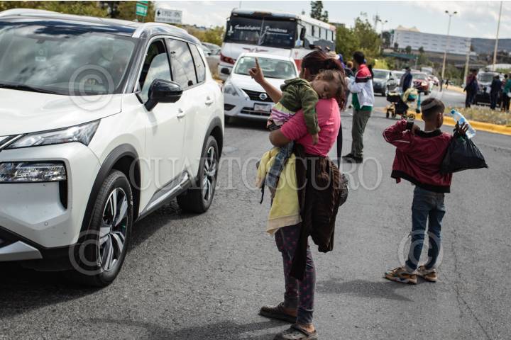 ZACATECAS, ZACATECAS, 18OCTUBRE2024.- Alrededor de doscientas personas migrantes, entre hombres, mujeres y niños; y quienes habría salido en Caravana desde hace dos meses de Tapachula, Chiapas, caminaron por el bulevar metropolitano para después llegar a la Comisión de Derechos Humanos del Estado de Zacatecas, para solicitar atención, comida y medicamentos. Llegaron a la ciudad de Zacatecas desde hace cinco días en camiones que, según informaron, autoridades de Migración Nacional les autorizó para llegar a la frontera con los Estados Unidos. Pero en su recorrido fueron bajados en la ciudad y resguardados en la Casa del Migrante. Después de cinco días esperando la promesa de continuar en los camiones hasta la ciudad fronteriza de Piedras Negras, se desesperaron y decidieron solicitar apoyo al organismo de Derechos Humanos en el Estado. En el lugar fueron atendidos por los visitadores y se les atendió, con revisión médica, agua y alimentos. Hasta el momento la delegación del INM no ha informado del traslado de estos migrantes. FOTO: ADOLFO VLADIMIR /CUARTOSCURO.COM
