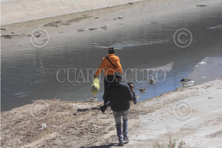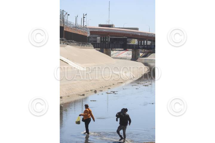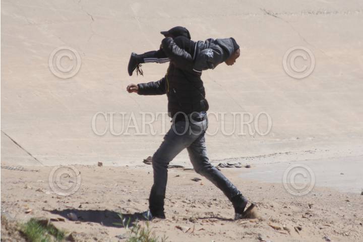 Una pareja de migrantes intentan cruzar la frontera norte con su niño en brazos.