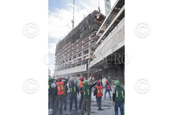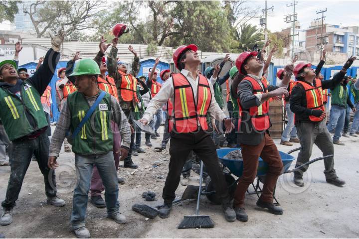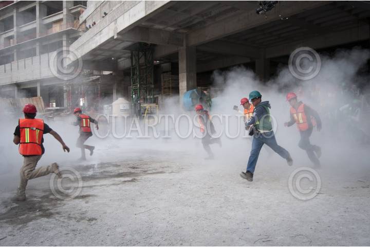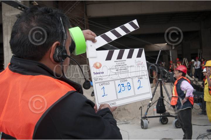 MÉXICO, D.F., 28DICIEMBRE2015.- Trabajadores participan como extras durante el inicio de grabaciones de la nueva telenovela "Sueño de Amor", en las instalaciones de una obra en construcción en la colonia Alpes de la delegación Álvaro Obregón. El drama es producido por Juan Osorio y protagonizado por los actores Betty Monroe y Cristian de la Fuente. FOTO: DIEGO SIMÓN SÁNCHEZ /CUARTOSCURO.COM