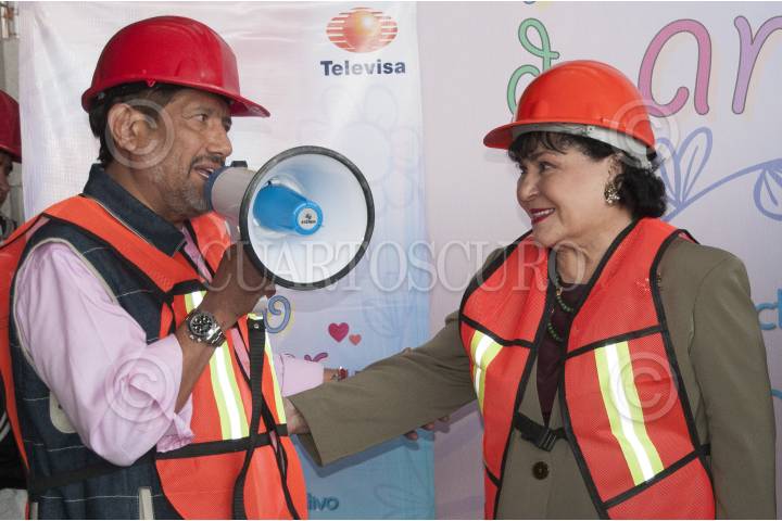 MÉXICO, D.F., 28DICIEMBRE2015.- El productor Juan Osorio acompañado de la actriz y diputada Carmen Salinas, y parte del elenco de la telenovela "Sueño de Amor", encabezaron el inicio de grabaciones en las instalaciones de una obra en construcción en la colonia Alpes de la delegación Álvaro Obregón. FOTO: DIEGO SIMÓN SÁNCHEZ /CUARTOSCURO.COM