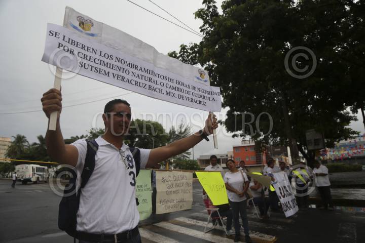 VERACRUZ, VERACRUZ, 27SEPTIEMBRE2016.- Docentes adheridos al Sindicato Unificador de Trabajadores al Servicio del Estado y el Magisterio (SUTSEM) realizaron el cierre de varias calles en la zona conurbada para exigir al gobierno estatal el pago completo de sus prestaciones, ya que solo se les ha depositado una parte. FOTO: ILSE HUESCA /CUARTOSCURO.COM