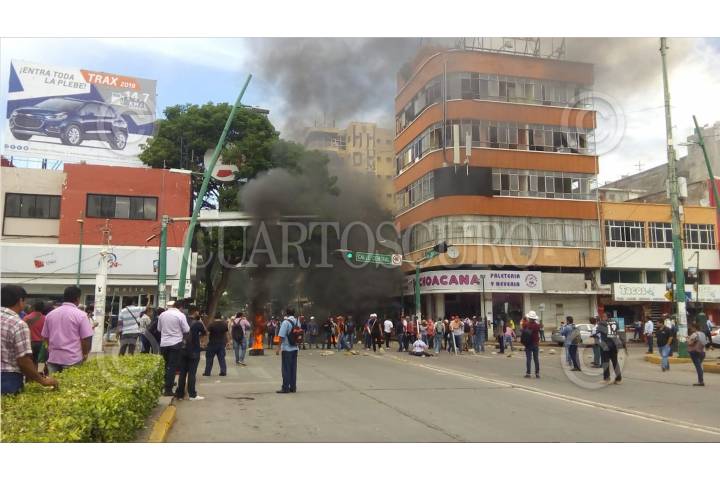 TUXTLA GUTIÉRREZ, CHIAPAS, 09OCTUBRE2018.- Trabajadores de gobierno del estado, maestros y organizaciones de campesinos han tomado varias instalaciones oficiales y bloqueado calles en por lo menos diez ciudades, incluyendo la capital Tuxtla Gutiérrez en Chiapas. En la capital chiapaneca se vive el mayor caos. La Torre Chiapas, que alberga a cerca de diez dependencias importantes, fue tomada por burócratas, en demanda de un aumento salarial de por lo menos 3.5% y rechazaron la propuesta estatal de 2.1 por ciento. FOTO: CUARTOSCURO.COM
