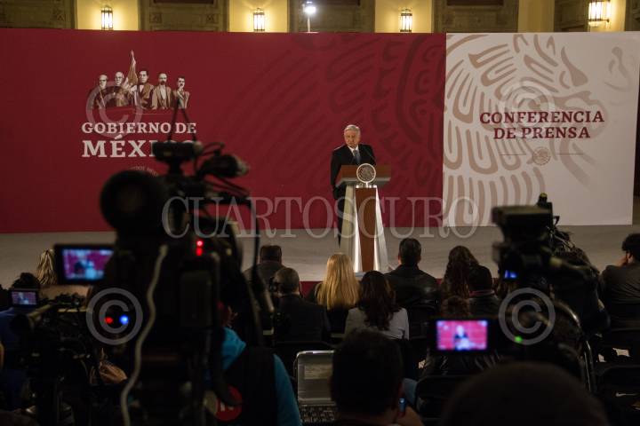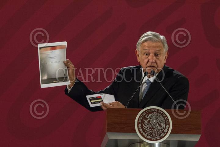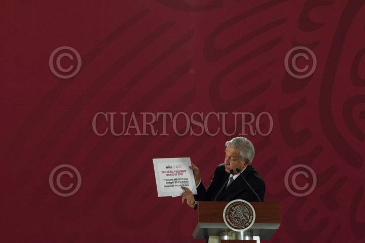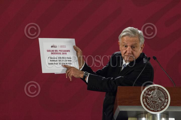 CIUDAD DE MÉXICO, 18DICIEMBRE2018.- Andrés Manuel López Obrador, presidente de la República, durante su conferencia matutina en la cual dio detalles sobre su primera quincena recibida como presidente, así como el regreso de dinero por la misma. FOTO: ANDREA MURCIA /CUARTOSCURO.COM