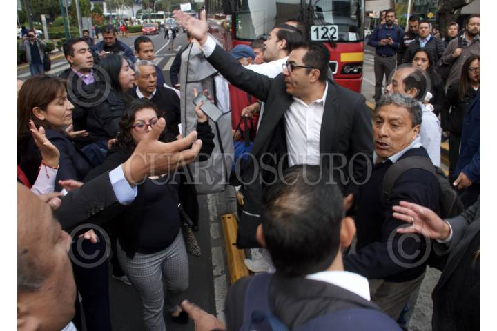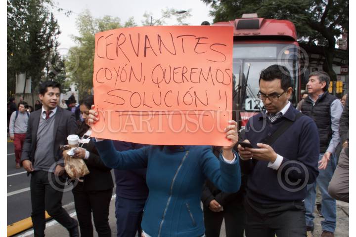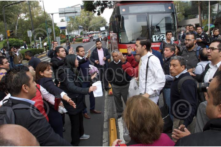 CIUDAD DE MÉXICO, 10OCTUBRE2019.- Trabajadores de Comisión Nacional Bancaria de Valores, bloquearon insurgentes en ambos sentidos a la altura de el Parque la Bombilla, los inconformes exigen que paren los descuentos a su salario y la entrega de sus cajas de ahorro. FOTO: ROGELIO MORALES /CUARTOSCURO.COM