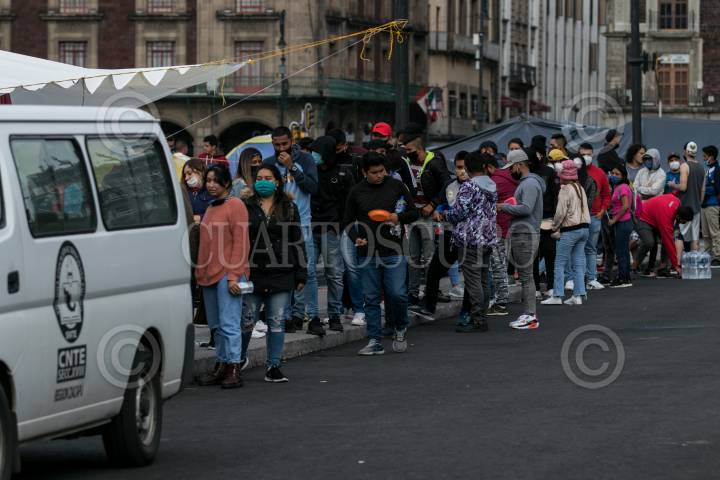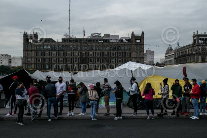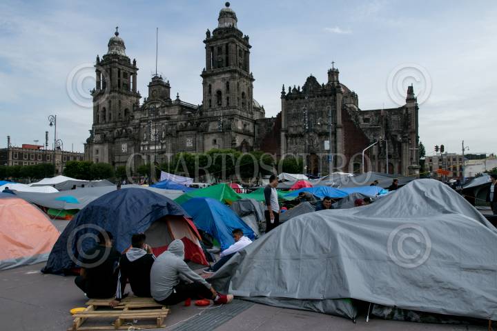 Plantón de integrantes de la Sección 18 de la Coordinadora Nacional de Trabajadores de la Educación (CNTE) frente a Palacio Nacional.