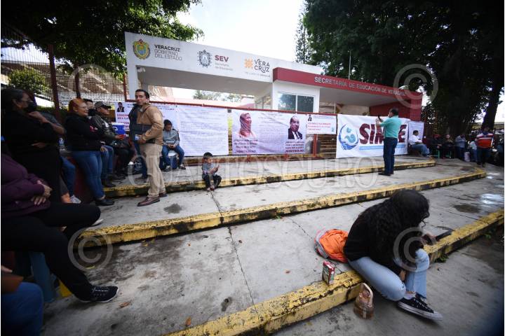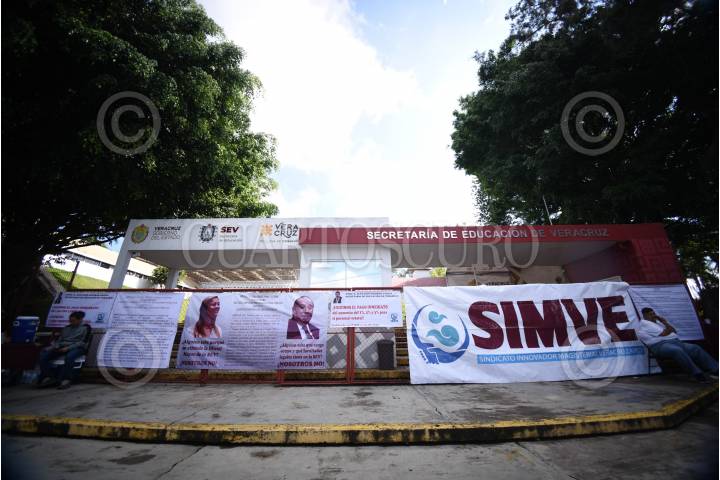 Integrantes del Sindicato Innovador Magisterial Veracruzano (SIMVE) bloquearon el acceso a la Secretaría de Educación de Veracruz para exigir el pago de su aumento salarial.
