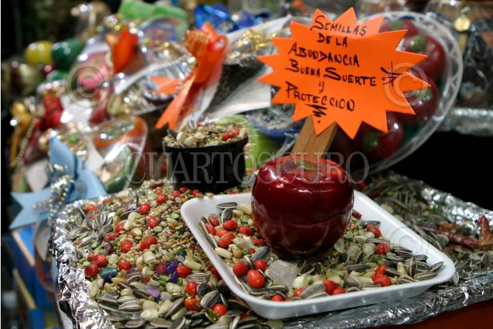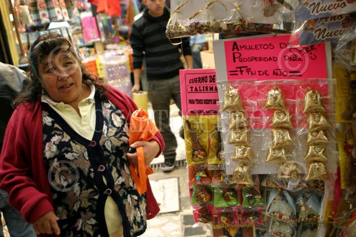 MÉXICO, D.F. 18DICIEMBRE2009.- Diversos amuletos como baños, rituales, veladoras y semillas así como los clásicos borregitos son vendidos en los mercados de la ciudad para recibir el Año Nuevo 2010 con prosperidad y buena suerte. FOTO: RODOLFO ANGULO/CUARTOSCURO.COM