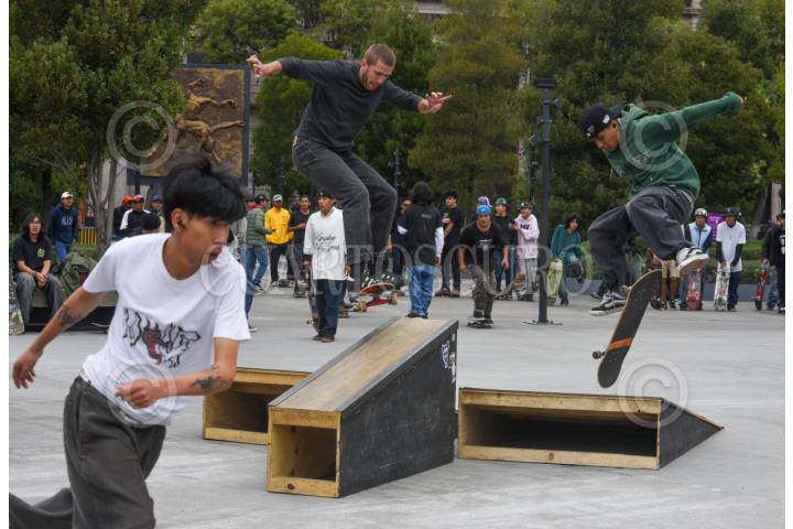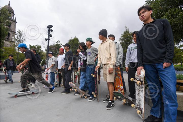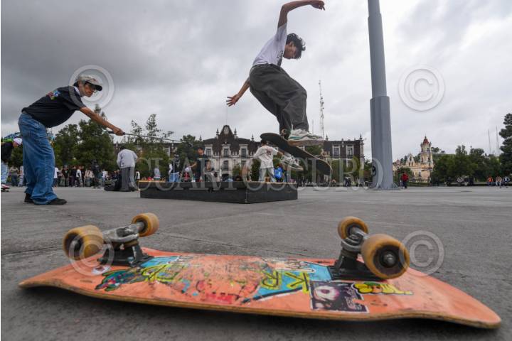 TOLUCA, ESTADO DE MÉXICO, 21JUNIO2025.- Jóvenes salieron a rodar y realizar diversas suertes con sus tablas en la ciudad de Toluca como parte de la celebración del Día Mundial del Skate. FOTO: CRISANTA ESPINOSA AGUILAR/CUARTOSCURO.COM