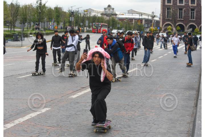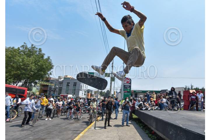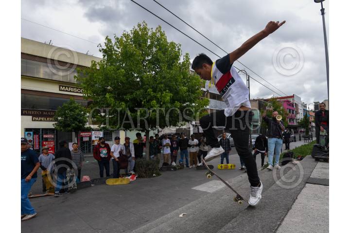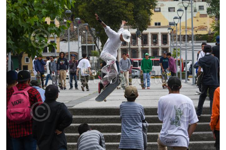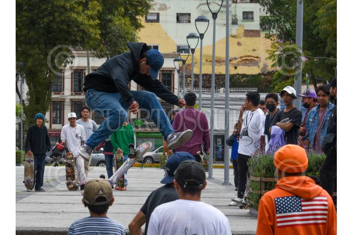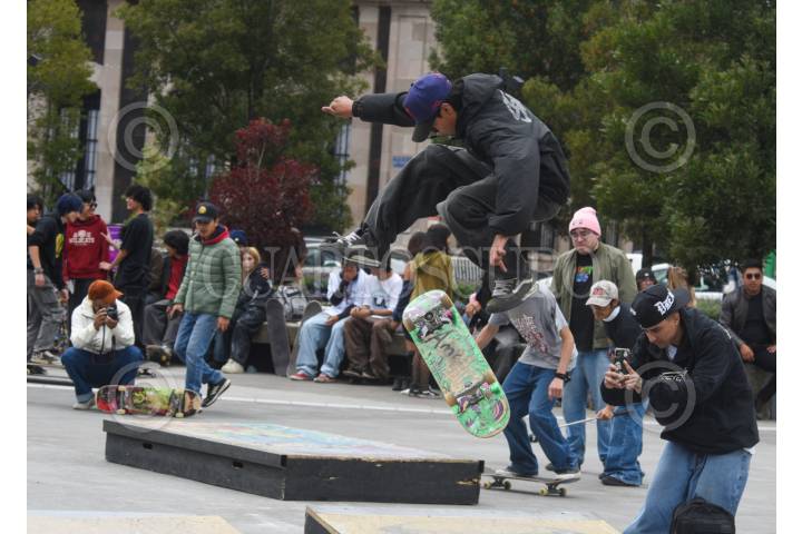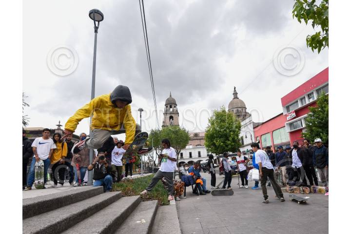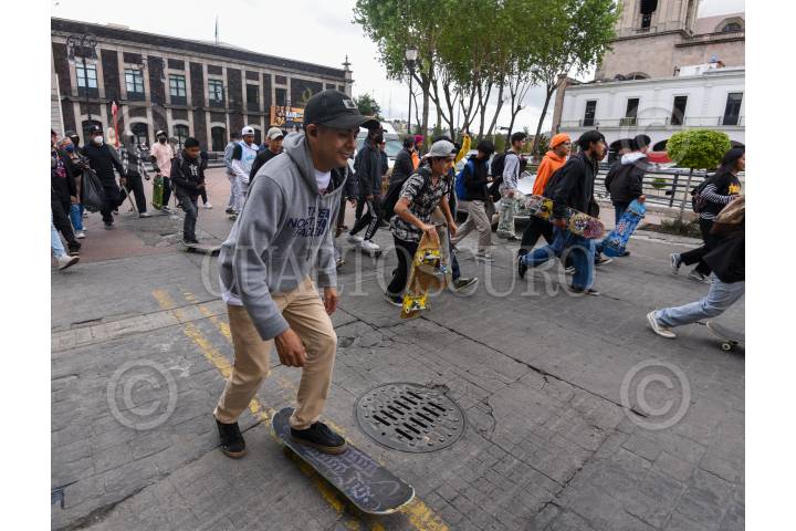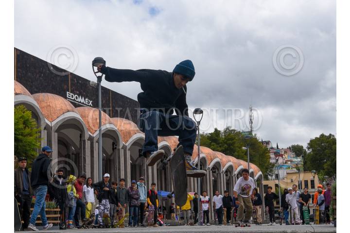 Con diversas suertes en la patine ya jóvenes de Toluca salieron a rodar en las calles de la capital mexiquense para celebrar el Día Mundial del Skate.