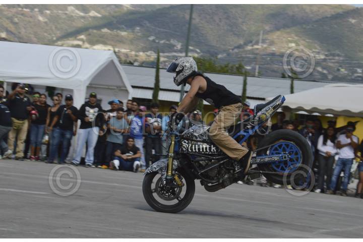 CHILPANCINGO, GUERRERO, 04DICIEMBRE2016.- Motociclistas celebraron su día en la explanada del PRI, con la participación de motociclistas de diferentes municipios quienes deleitaron a los presentes con suertes en los potros de hierro. Stunky Rodríguez de Guadalajara fue uno de los invitados especiales. FOTO: JOSÉ I. HERNÁNDEZ /CUARTOSCURO.COM