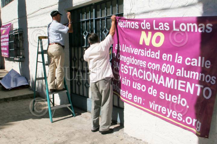 MÉXICO, D.F., 17ENERO2010.- Vecinos de la avenida Corregidores, de la colonia Lomas de Chapultepec, clausuraron de manera simbólica la entrada de una universidad la cual según los habitantes del lugar no cuenta con los permisos suficientes como el uso de suelo y estacionamientos para los 600 alumnos que se piensa sea el cupo por lo que no se puede ofrecer un buen servicio. FOTO: ENRIQUE ORDÒÑEZ/CUARTOSCURO.COM