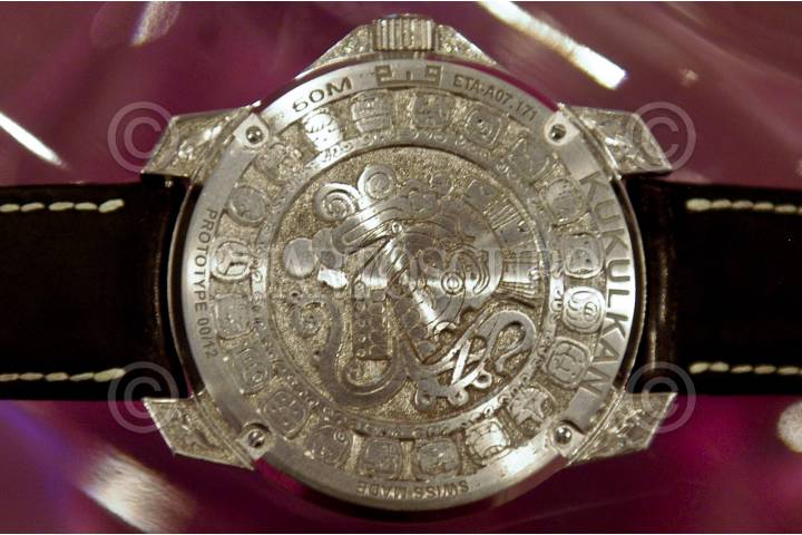 MÉXICO, D.F., 02FEBRERO2012.- Un reloj suizo fue presentado ante los medios de comunicacion y que tiene como particularidad que tiene la simbologia maya. FOTO: IVAN MENDEZ/CUARTOSCURO.COM