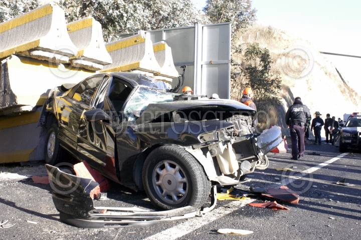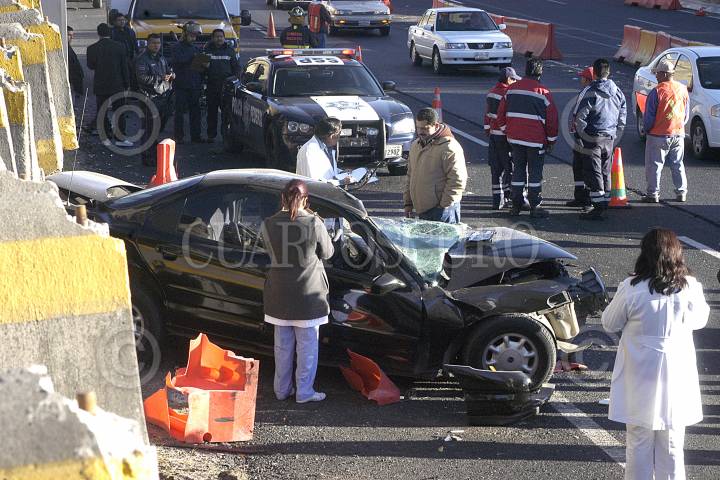 NAUCALPAN, ESTADO DE MÉXICO, 30DICIEMBRE2010.- Un sujeto de aproximadamente 35 años pierde la vida al impactarse con un auto Cavalier de color negro en el que viajaba, contra una camioneta Pick Up placas MAP-3866 que brinco la barra de contención en el Km. 22 de la Autopista Chamapa - Lechería perímetro de Naucalpan. FOTO: LUIS CARBAYO/CUARTOSCURO.COM