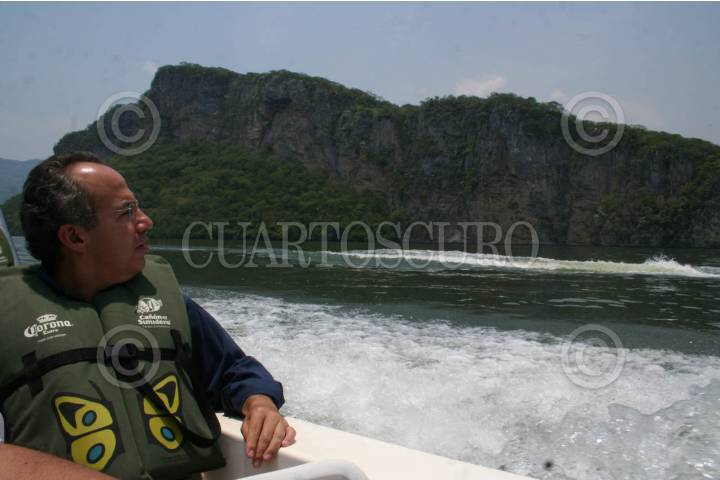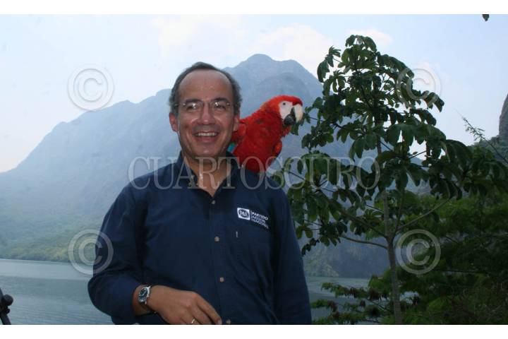 CAÑON DEL SUMIDERO, CHIAPAS 19MAYO2006.- El candidato del PAN a la Presidencia de la República. Felipe Calderón, realizó una visita a este escenario natural, en donde estuvo acompañado de panistas de la localidad, en donde dirigió un discurso. FOTO: Alfredo Guerrero/CUARTOSCURO.COM