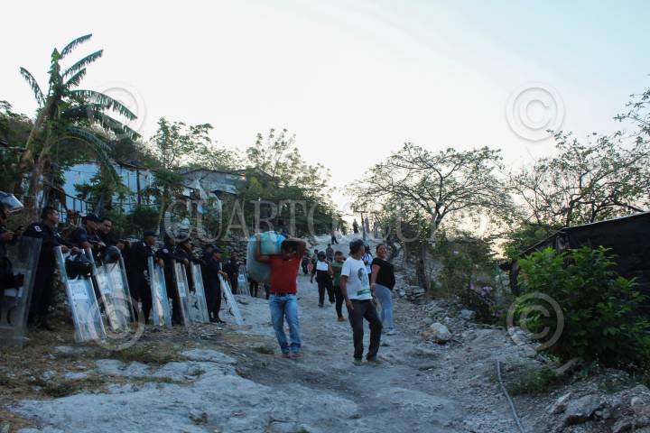 TUXTLA GUTIÉRREZ, 09MAYO2019.- Más de 1100 elementos del orden federal, estatal y municipal realizaron el desalojo de 21 hectáreas de las 42 que se encuentran en uso irregular dentro del Parque Nacional Cañon del Sumidero. Las 21 hectáreas corresponden a tres predios denominados Las Granjas 1, Ampliación Los Limones y La Fortuna; más de 300 familias perdieron sus hogares. El gobierno afirmó que ésta es la primera de tres fases para desalojar el área. Se derrumbaron más de 150 viviendas, no hubo detenidos. FOTO: ALEJANDRA CHAVEZ /CUARTOSCURO.COM