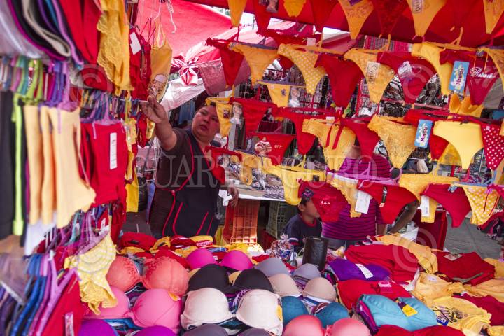 MÉXICO, D.F., 31DICIEMBRE2006.- La ropa interior es utilizada en la noche de Año Viejo para atraer la buena suerte, el amor y el dinero, por lo que comerciantes ofrecen dicha prenda en mercados. FOTO: ISAAC ESQUIVEL/CUARTOSCURO.COM