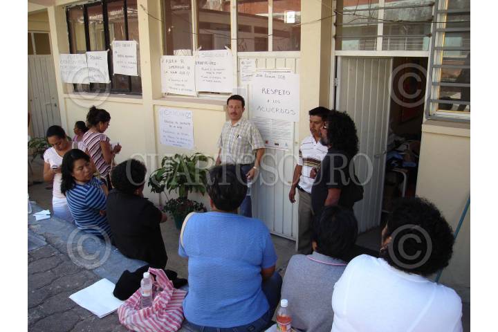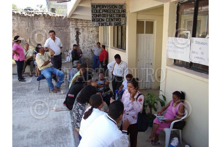 TIXTLA GUERRERO, 13FEBRERO2008.- Aspecto de la protesta y paro de labores que realizaron maestros en la supervisión 008 de la ciudad de Tixtla, para pedir la destitución del supervisor Ernesto López Díaz a quien acusan de corrupto, prepotente y déspota. FOTO: OSCAR ALVARADO/CUARTOSCURO.COM