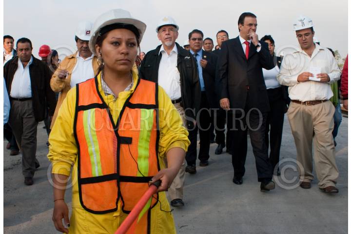 MÉXICO, D.F., 17JUNIO2009.- Fernando Aboitiz, director general de Proyectos Especiales de la Secretaría de Obras, Marcelo Ebrard jefe de gobierno capitalino y Jorge Arganis, Secteario de Obras local, durante un recorrido que realizo en las obras en el tramo de Rio churubusco, el mandatario local detalló que al día de hoy ya se colocó el concreto hidráulico y se lleva un avance, en términos generales en la construcción de los puentes vehiculares, de 98 por ciento. FOTO: RICARDO CASTELAN/CUARTOSCURO.COM