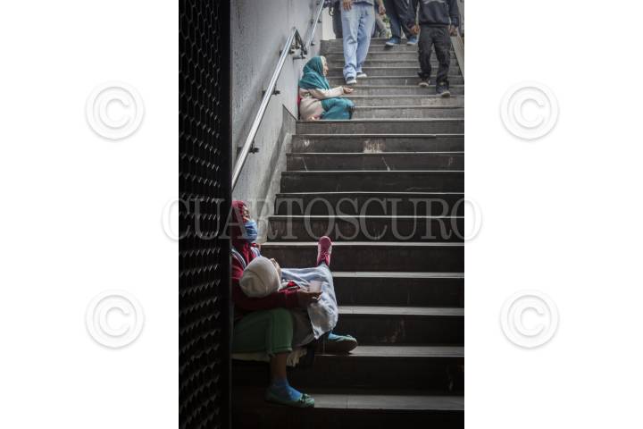 MÉXICO, D.F., 14MARZO2015.- Una mujer con un jovencito enfermo pide limosna en la salida del metro Chapultepec, al fondo otra mujer de la tercera edad pide una moneda para sobrevivir. FOTO: MOISÉS PABLO /CUARTOSCURO.COM