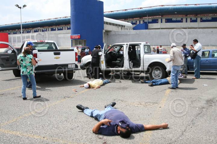 PACHUCA, HIDALGO 13MAYO2010.- Elementos del Ministerio Publico, de diferentes municipios del estado, como una forma de capacitación realizaron una practica de una supuesta ejecución en uno de los estacionamiento del Estadio Hidalgo. FOTO: GUILLERMO PEREA/CUARTOSCURO.COM