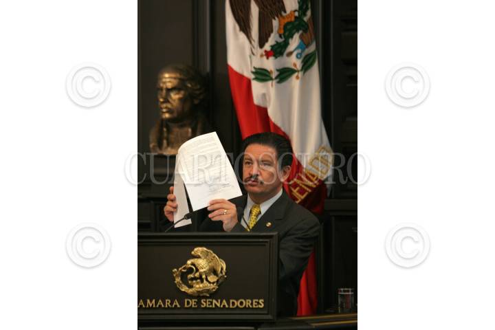 MÉXICO D.F. 04MARZO2008.- El coordinador de la bancada del PRD en le senado Carlos Navarrete presentó en tribuna los documentos que supuestamente firmó el secretario de gobernación Juan Camilo Mouriño cuando este era funcionario de la secretaria de energía. FOTO: HUGO CRUZ/CUARTOSCURO.COM