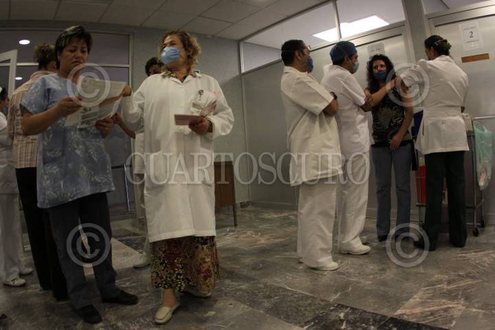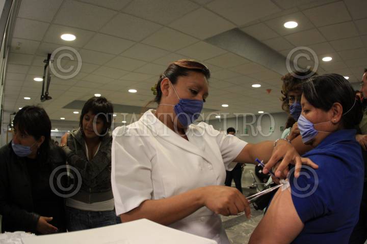 MÉXICO D.F., 27ABRIL2009.- Personal que labora en la clinica infantil ubicado en Av. Politecnico recibe la vacuna Vaxigrip antiinfluenza, cabe mencionar que solo el personal que labora en la clínica es vacunado ya que supuestamente es el que esta en mayor riesgo FOTO: SÁSHENKA GUTIÉRREZ/CUARTOSCURO.COM