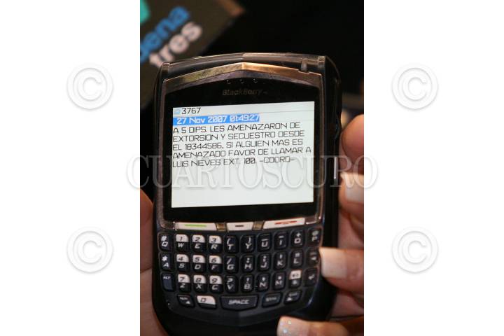 MÉXICO D.F. 27NOVIEMBRE2007.-La diputada del PAN, Lizbeth Medina, una de los 5 diputados que recibieron llamada de supuesto secuestro de un familiar, durante la sesión en la Cámara de Diputados.En la imagen la diputada muestra el mensaje que hace llegar la coordinación advirtiendo de las llamadas de extoción FOTO: GUILLERMO PEREA/CUARTOSCURO.COM
