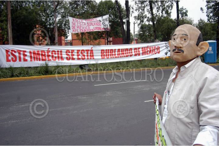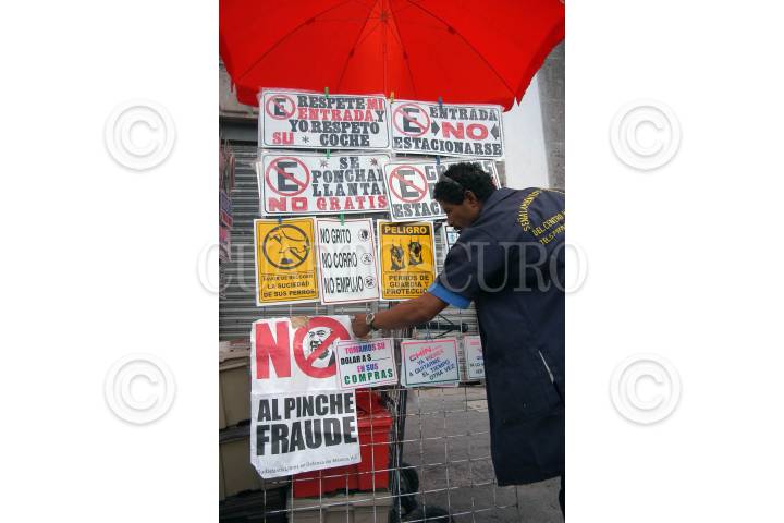 MÉXICO D.F. 17JULIO2006.- Propaganda en contra del supuesto fraude colgado en un puesto donde se venden carteles con leyendas mexicanas para los comerciantes. FOTO: Guillermo Perea/CUARTOSCURO.COM