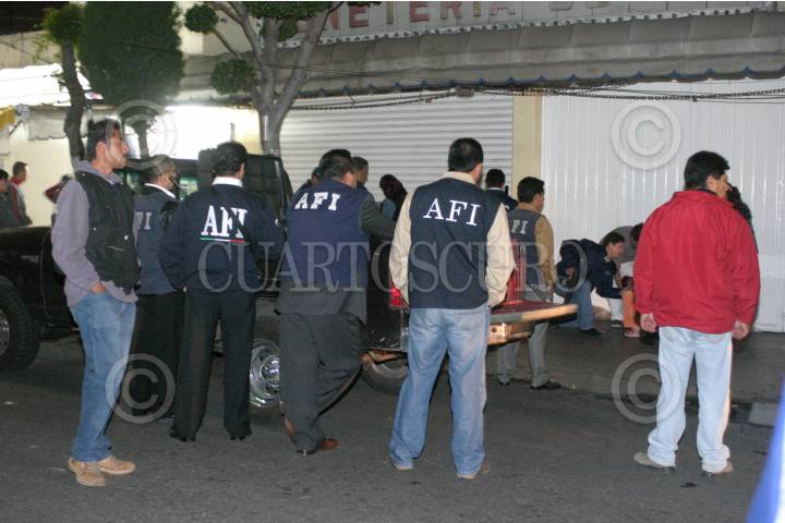 MÉXICO, D.F., 06AGOSTO2009.- Durante un operativo de la AFI, en la calle de Yurecuaro en la colonia Popular del rastro. Una mujer fingió un desmayo, ya que nunca soltó su teléfono celular. Elementos de la AFI, no hicieron reacción alguna del supuesto desmayo. FOTO: LUZ ACEVEDO/CUARTOSCURO.COM