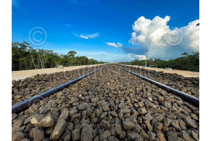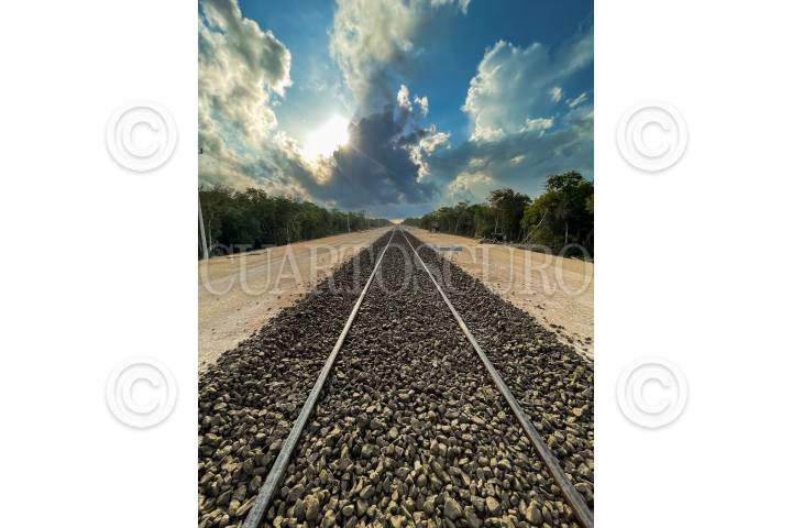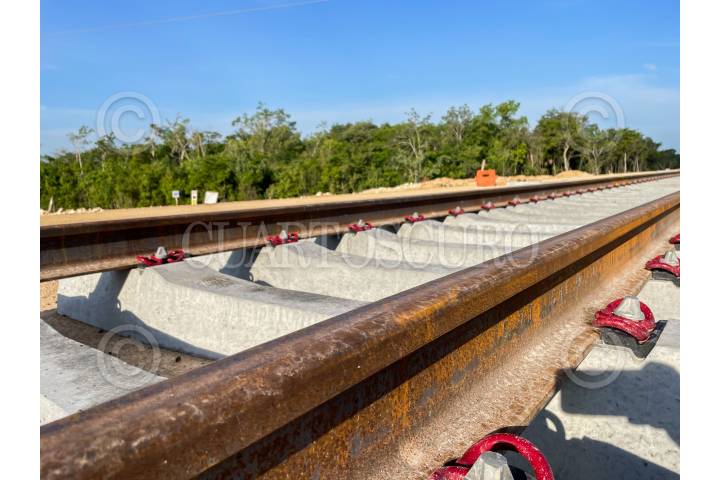 Aspectos de los trabajos del Tren Maya en su tramo 5, en las inmediaciones del aeropuerto de Cancún, Quintana Roo.