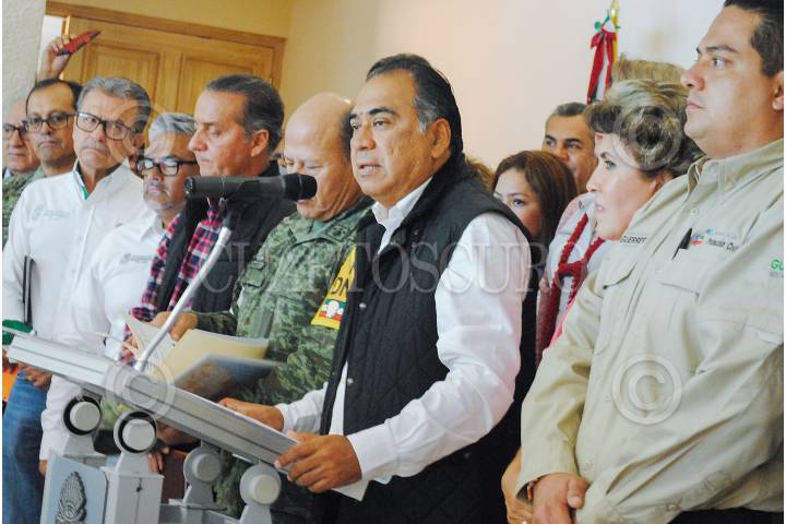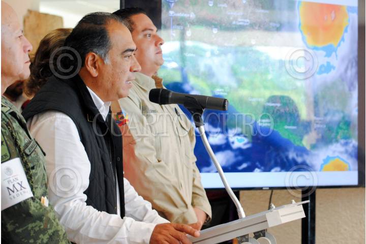 CHILPANCINGO, GUERRERO,08SEPTIEMBRE2017.- Héctor Astudillo, gobernador de Guerrero, ofreció una conferencia para anunciar que se suspenden las clases por el sismo de anoche y el aguacero que azotó la capital por el huracán Katia. FOTO: JOSÉ I. HERNÁNDEZ / CUARTOSCURO.COM