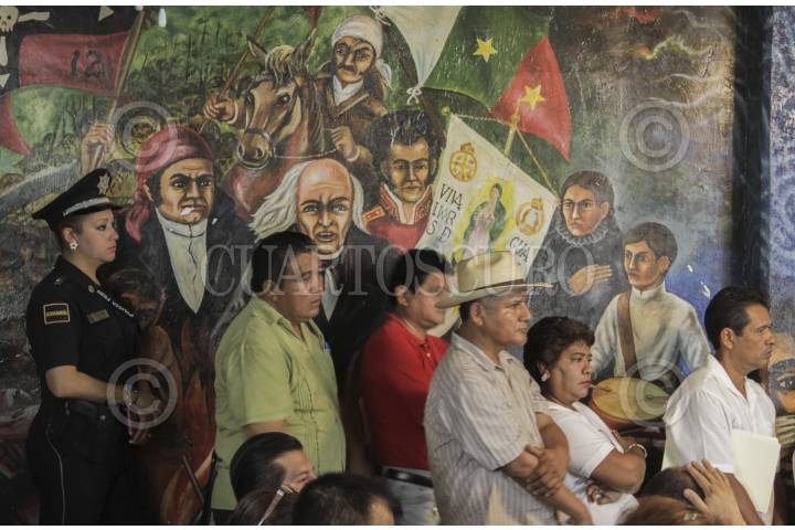 ACAPULCO, GUERRERO, 13ENERO2015.- En la secundaria técnica número uno, profesores pidieron a autoridades estatales y mandos federales que brinden seguridad, ya que, ante la falta de resultados en los operativos de vigilancia implementados en colonias de la periferia, se negaron a reanudar actividades hasta que existan garantías para retornar a los planteles. La mañana de este martes, el titular de la Secretaría de Educación Guerrero, Salvador Martínez Della Roca, encabezó la reunión institucional en el auditorio de la Técnica uno, ubicada en la avenida Ruiz Cortines. La población escolar ha disminuido hasta 50 por ciento, señalaron directores de planteles del Coloso. Los docentes exigieron un plan integral de reconstrucción del tejido social y no solamente dotar de más policías a las colonias conflictivas, entre las que señalaron la Emiliano Zapato, Renacimiento, Coloso, Pie de la Cuesta, Aguacalientes, “es todo Acapulco”, alertaron docentes. FOTO: BERNANDINO HERNÁNDEZ /CUARTOSCURO.COM