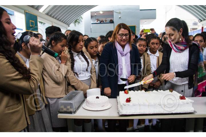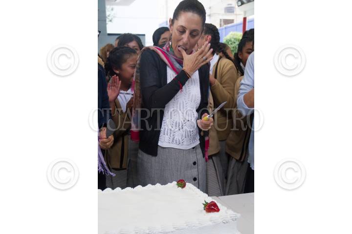 CIUDAD DE MÉXICO, 24JUNIO2019.- La jefa del Gobierno de la Ciudad, Claudia Sheinbaum, entrego apoyos del programa Mejor Escuela y tarjetas de útiles y uniformes escolares a jóvenes de la secundaria 48, que se encuentra en la Colonia Navidad, de la alcaldía Cuajimalpa. Posteriormente la mandataria local Sheinbaum Pardo, celebró su cumpleaños con varios pasteles y una alumna de esta escuela le canto las mañanitas. FOTO: VICTORIA VALTIERRA /CUARTOSCURO.COM