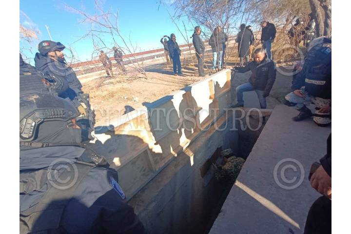 CIUDAD JUÁREZ, CHIHUAHUA, 11ENERO2025.- Elementos de la Secretaría de la Defensa Nacional (Defensa), Secretaría de Marina (Semar), Fiscalía General de la República (FGR), Guardia Nacional (GN) y Secretaría de Seguridad y Protección Ciudadana (SSPC), en coordinación con la Agencia Estatal de Investigación (AEI) de Chihuahua, en la frontera de Ciudad Juárez, localizaron un túnel con dirección hacia los Estados Unidos de América. Ante ello, se informó a la Secretaría de Relaciones Exteriores para las gestiones correspondientes con las autoridades de Estados Unidos. El lugar fue resguardado y sellado para dar seguimiento a las investigaciones. FOTO: CUARTOSCURO.COM
