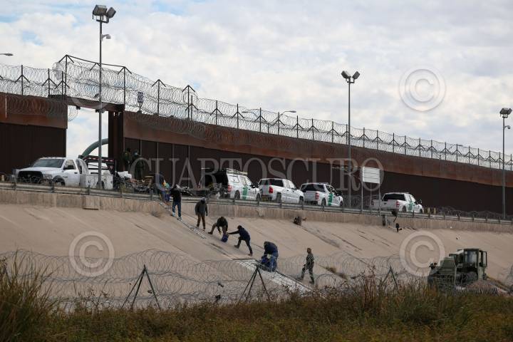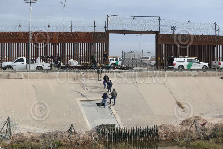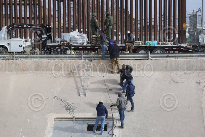 CIUDAD JUÁREZ, CHIHUAHUA, 16ENERO2025.- Autoridades de Estados Unidos sellan túnel clandestino en la frontera. Este jueves, autoridades de Estados Unidos acudieron a la frontera entre Ciudad Juárez y El Paso para proceder con el sellado de un túnel clandestino utilizado por traficantes de personas. En el operativo, que incluyó el uso de concreto, alrededor de 10 personas ingresaron el material en botes a través de cuerdas. El túnel había sido detectado el 9 de enero y fue clausurado en un operativo binacional conjunto. FOTO: CARLOS SÁNCHEZ/CUARTOSCURO.COM