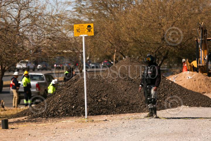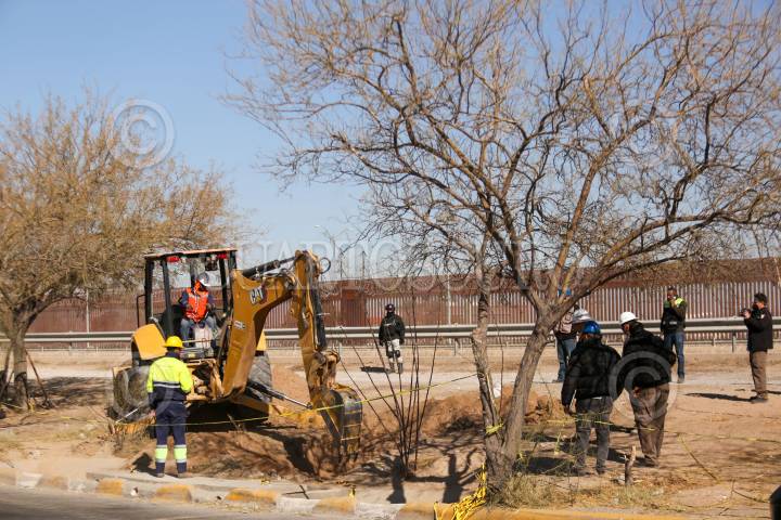CIUDAD JUÁREZ, CHIHUAHUA, 13ENERO2025.- Autoridades policiales llevaron a cabo nuevas investigaciones en el túnel detectado el pasado 9 de enero a un costado del bulevard Cuatro Siglos, utilizado por polleros en la frontera entre Ciudad Juárez y El Paso, Texas. Este pasadizo clandestino, clausurado al día siguiente de su hallazgo, contaba con luz conectada a un transformador del alumbrado público, cuyo cable cruzaba la calle incrustado en el pavimento. Hoy, un fuerte operativo en el que participaron elementos de la Fiscalía General de la República ingresaron con equipo de televisión y un dron para documentar el lugar y retomar las investigaciones. FOTO: CARLOS SÁNCHEZ COLUNGA/CUARTOSCURO.COM