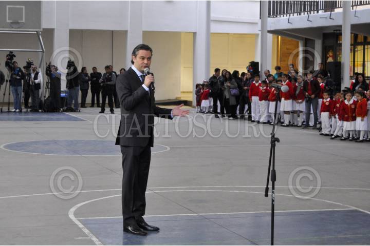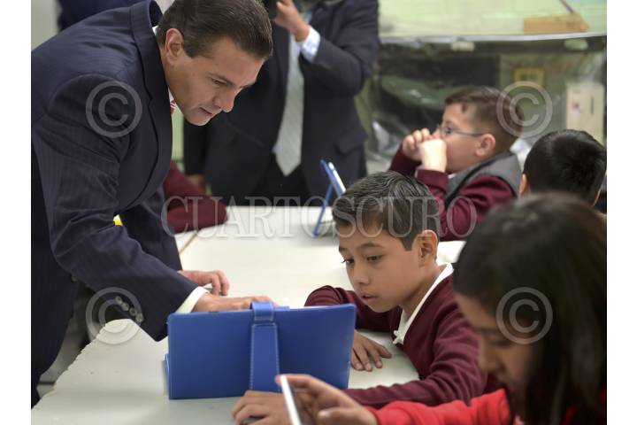 MÉXICO, D.F., 07DICIEMBRE2015.- El Presidente Enrique Peña Nieto visitó hoy la Escuela Primaria Rodolfo Menéndez, donde destacó que se podrán obtener “recursos adicionales a través de la participación que pueda haber en la Bolsa Mexicana de Valores, de quienes compren los bonos educativos, por 50 mil millones de pesos más”, mediante los Certificados de Infraestructura Educativa Nacional (CIEN). FOTO: PRESIDENCIA /CUARTOSCURO.COM