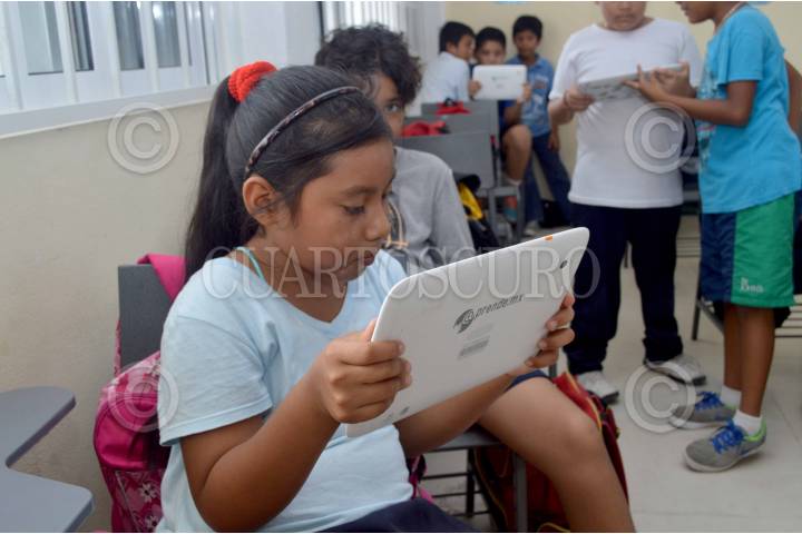 CANCÚN, QUINTANA ROO, 18ENERO2016.- Padres de familia y maestros de escuelas de cancún, mencionan que las tabletas digitales entregadas por la SEP a mas de 10 mil niños en Benito Juarez (Cancun) no cumplen con las necesidades requeridas ya que los aparatos dejan de funcionar y colapsan si la batería baja a menos del 60 por ciento de carga, y en 15 escuelas de esta ciudad se carece de internet lo que impide que alumnos y maestros puedan realizar de manera eficiente las actualizaciones a los programas preinstalados por las secretaria. FOTO: ELIZABETH RUIZ /CUARTOSCURO.COM