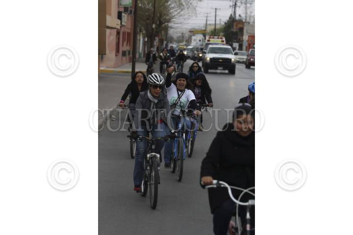 CIUDAD JUÁREZ, CHIHUAHUA, 10MARZO2012.-Un grupo de 30 mujeres emprendieron este día una travesía en bicicleta por las avenidas principales de Ciudad Juárez, la finalidad es concientizar a la ciudadanía del uso de bicicleta. Las féminas partieron en bicicleta del parque Borunda y posteriormente agarraron un carril de la avenida 16 de Septiembre hasta llegar a la Gómez Morín. Según dio a conocer el evento forma parte de la celebración del Día Internacional de la Mujer y además para que más personas hagan el uso de la bicicleta como medio de transporte ayudando de esta manera a la ecología. FOTO: NACHO RUÍZ /CUARTOSCURO.COM