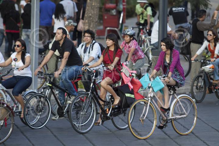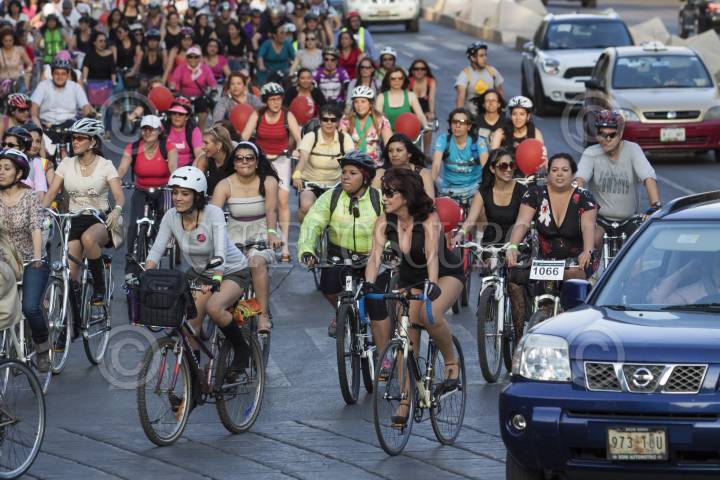 MÉXICO, D.F., 09MARZO2013.- Cientos de mujeres de todas las edades acudieron a la rodada en tacones por motivo del Día Internacional de la Mujer y también para impulsar el uso de la bicicleta en la ciudad de México las cuales partieron del Monumento a la Revolución con destino al parque Angela Peralta en Polanco. FOTO: RODOLFO ANGULO /CUARTOSCURO.COM