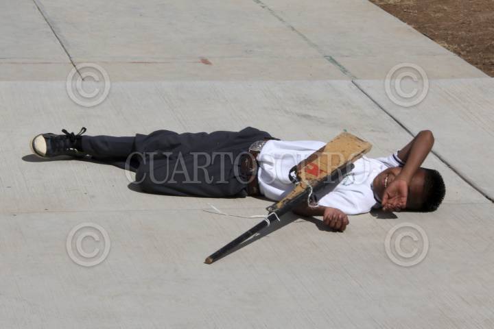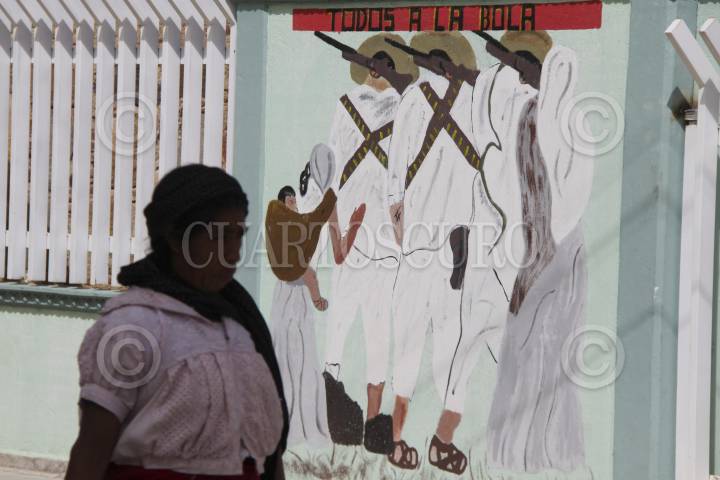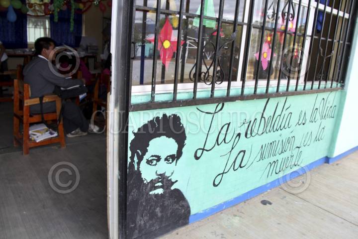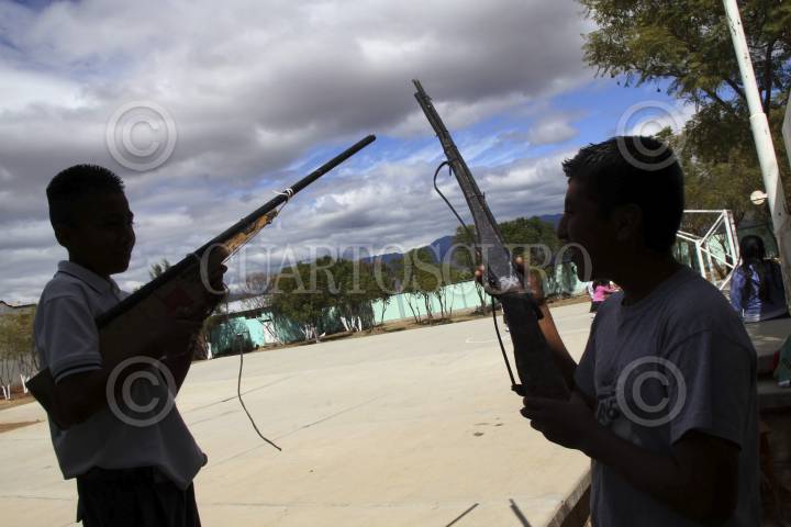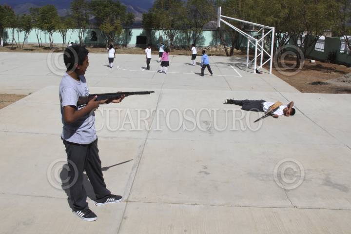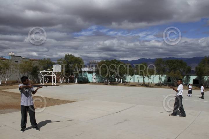 SAN LUCAS QUIAVINÍ, OAXACA, 11DICIEMBRE2013.- En el municipio de San Lucas Quiaviní existen tres escuelas de las cuales dos enseñan profesores de la Sección 59 del SNTE, la primaria Francisco Zarco y la Telesecundaria en la que de acuerdo con sus nuevos mentores el nivel educativo es mínimo, los padres de familia acusan a los profesores de la Sección 22 de la CNTE, quienes enseñaban el ciclo anterior, de enseñar a sus hijos tácticas de guerrilla, mientras los niños afirman que la enseñanza se basó en obras teatrales que los alumnos representaron los días 16 de septiembre y 20 de noviembre como parte de los festejos de la Revolución Mexicana e Independencia de México. FOTO: ARTURO PÉREZ ALFONSO/CUARTOSCURO.COM