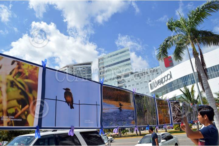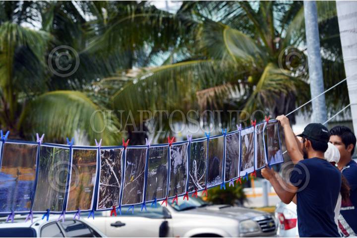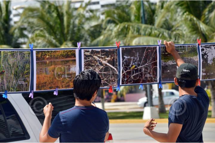 CANCÚN, QUINTANA ROO, 01MARZO2016.- Ender Córdova, activista del grupo ambientalista "Guardianes del Manglar", colocó una exposición fotográfica sobre la fauna silvestre que aún vive en Malecón Tajamar y donde las autoridades correspondientes deberían estar rehabilitando el área. FOTOS: ELIZABETH RUIZ /CUARTOSCURO.COM