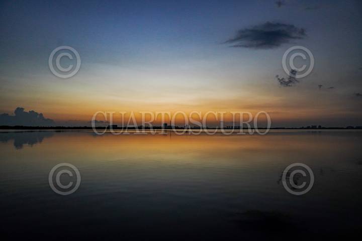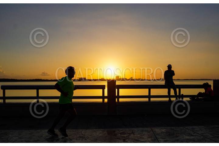 CANCÚN, QUINTANA ROO,04FEBRERO2017.- Este es el Año Internacional del Turismo Sostenible, y como parte de sus actividades se lanzó la campaña Viajemos por Quintana Roo, para movilizar a los turistas y locales por todo el estado. En la imagen, los primeros rayos del sol en el malecón Tajamar. FOTO: ELIZABETH RUIZ /CUARTOSCURO.COM