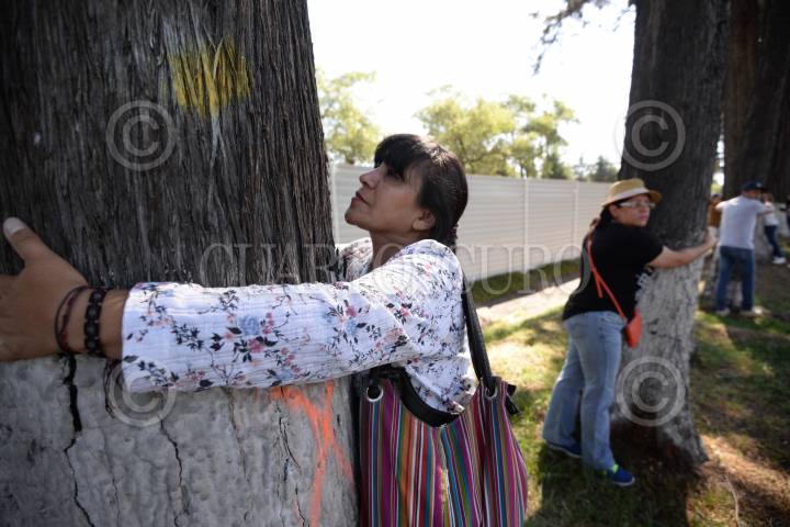 TOLUCA, ESTADO DE MÉXICO, 20JUNIO2017.- Ciudadanos e integrantes de asociaciones civiles abrazaron los árboles de Paseo Tollocan, después de que se anunció la construcción de retornos viales, y la tala de 100 de estos árboles, para poder tener acceso al centro comercial Galerías Toluca, exigieron al gobierno estatal se pare este ecocidio. FOTO: ARTEMIO GUERRA BAZ /CUARTOSCURO.COM